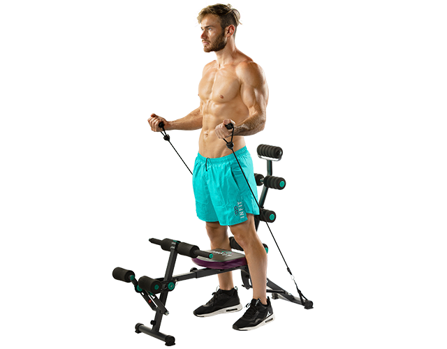 Cuenta con un dispositivo que permite tener un entrenamiento completo ayudando a trabajar el tronco superior, bíceps, tríceps, pectorales, hombros, espalda y abdomen.